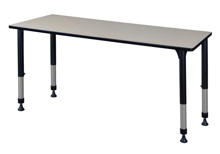 Give everyone more room with tables. adjustable post legs come four to a set and are height adjustable to accommodate students of all ages. Height is easy for adults to adjust by loosening and tightening a bolt with the included hex key. This 66-inch long classroom table assembles in a snap with just a few screws. The table is constructed of a thermal fused melamine laminate tabletop that is 1-inch thick and finished with a black T-Mold edge band. This Maple tabletop is double-sided and finished in Cherry on the other side. It has an extra-wide 30-inch wide work surface to accommodate more students or larger work materials. Simply pick the side you like and install the base on the other. Self tapping wood screws and a placement template are included. Laminates are scratch, stain and scald resistant and wipe clean easily. Rounded corners make the table safer for everyone. A sleek alternative to pedestal style bases, the adjustable post legs come in a classic black with chrome underneath. Adjustable glides on the bottom of the base ensure a level tabletop and are easy to adjust.Features for your benefit: