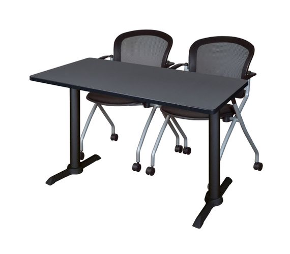 48 x 24 in. T-Base Training Seminar Table- Grey & 2 Nesting Chairs