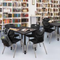 - Square Mobile Classroom Table and chairs set includes one 30" Square Table and 4 Black Andy 18-in Stack Chairs