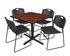 36 in. Square X-Base Breakroom Table- Cherry & 4 Stack Chairs- Black