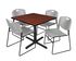 42 in. Square X-Base Breakroom Table- Cherry & 4 Stack Chairs- Grey