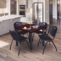 42 in Square Breakroom Table- Mahogany Top, Black Legs, 4 M Stack Chairs- Black