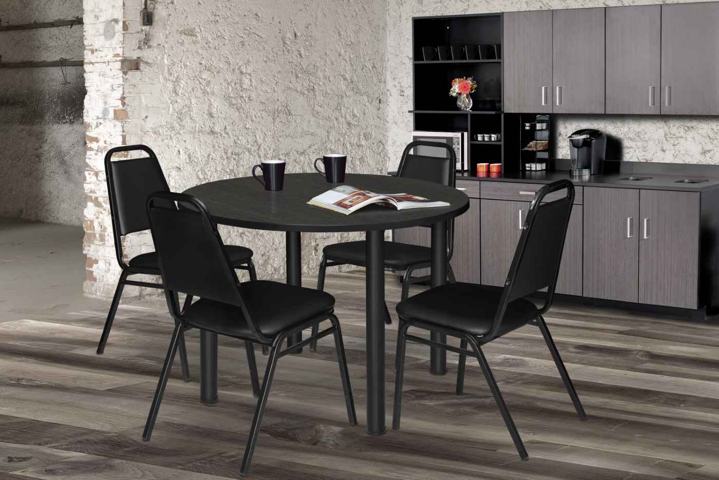 42 in. Medium Round Breakroom Table- Ash Grey Top, Black Legs