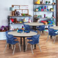 - Round Classroom Table and chairs set includes one 42" Round Table and 4 Navy Blue Andy 12-in Stack Chairs