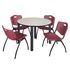 48 in Round Breakroom Table- Maple Top, Black Legs, 4 M Stack Chairs- Burgundy