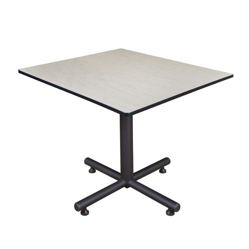 The elegant collection puts the class in classroom. These versatile tables are at home in stylish restaurant settings as well as classrooms, breakrooms and more. This 48-inch square table is constructed of a thermal fused melamine laminate tabletop that is 1-inch thick and finished with a black T-Mold edge band. This Maple tabletop is double-sided and finished in Cherry on the other side. Rounded corners make the table safer for everyone. Simply pick the side you like and install the base on the other. Self tapping wood screws and a placement template are included. Laminates are scratch, stain and scald resistant and wipe clean easily. The base is constructed of a black tubular steel X-Base and is protected with a black powder coated finish for a uniform, matte finish. Adjustable glides on the bottom that raise the whole base off the ground give the collection an open, modern look. table bases are backed by a 10-Year Limited Manufacturer's Warranty.Features for your benefit: