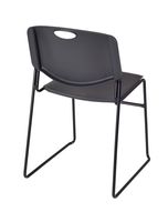 - Chairs have a reinforced black metal frame designed to withstand 400-pounds and a built-in carrying handle that makes moving easy
