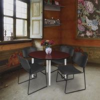 48 in. Round Breakroom Table- Mahogany Top, Chrome Base & 4 Stack Chairs- Black