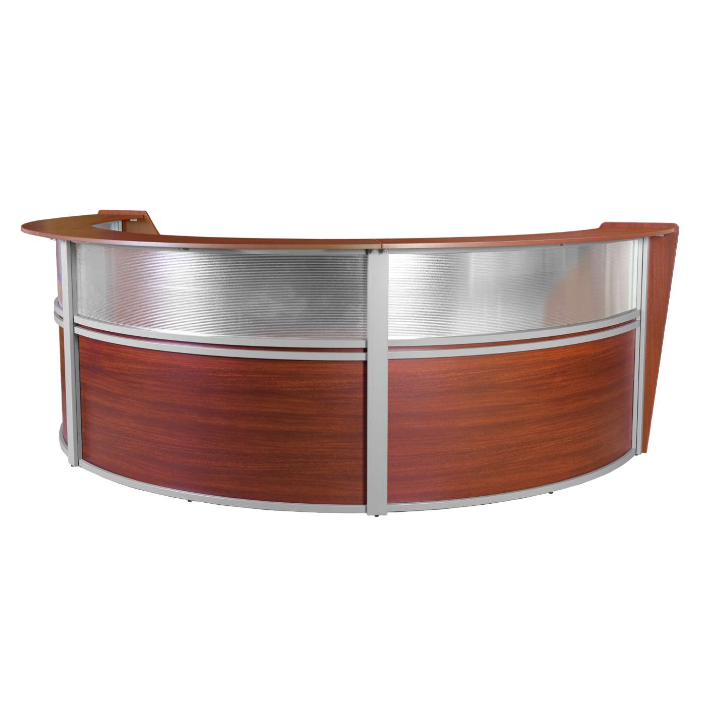 TRIPLE-UNIT RECEPTION CURVED DESK WORKSTATION “143.50W X 71D” - CHERRY -FREE SHIPPING-