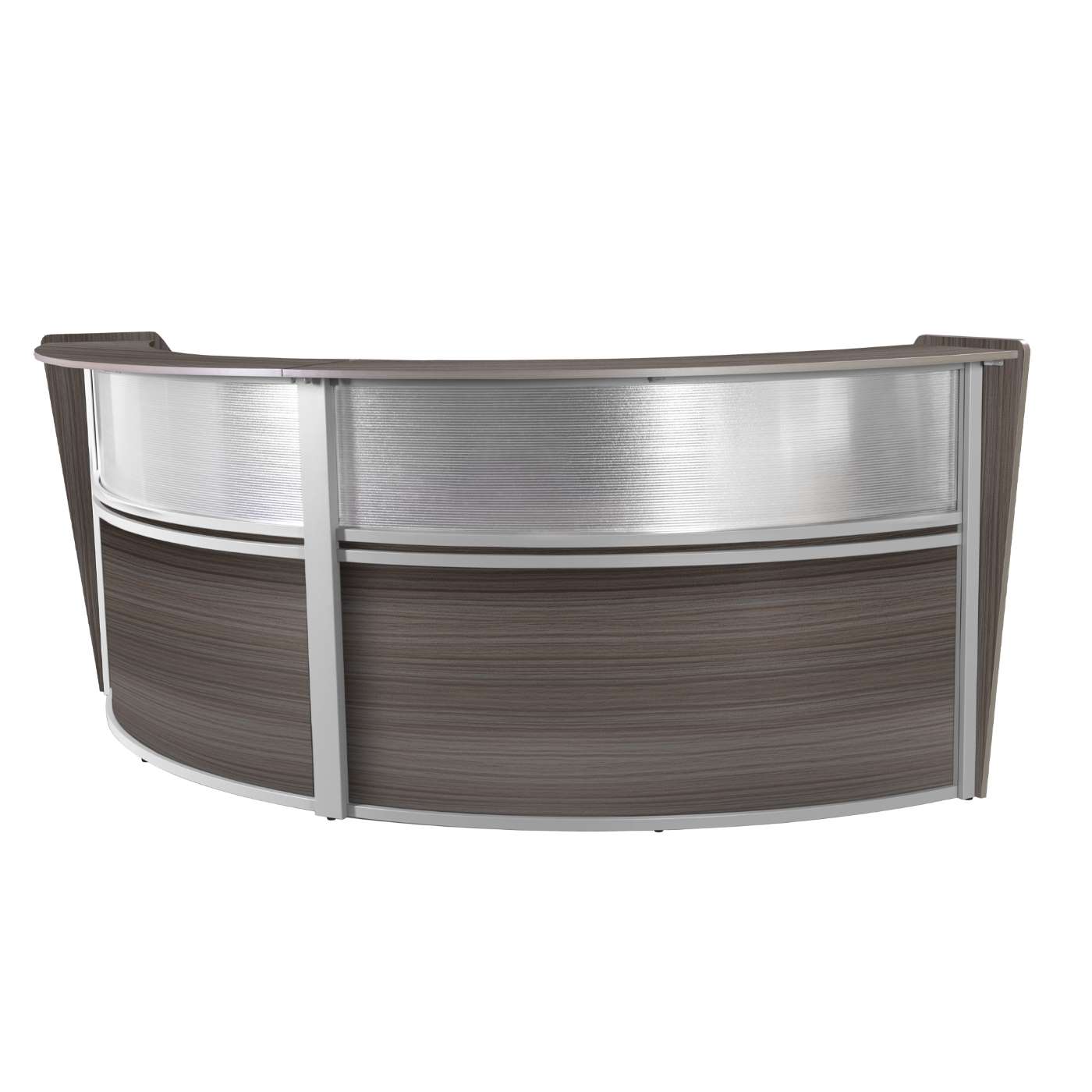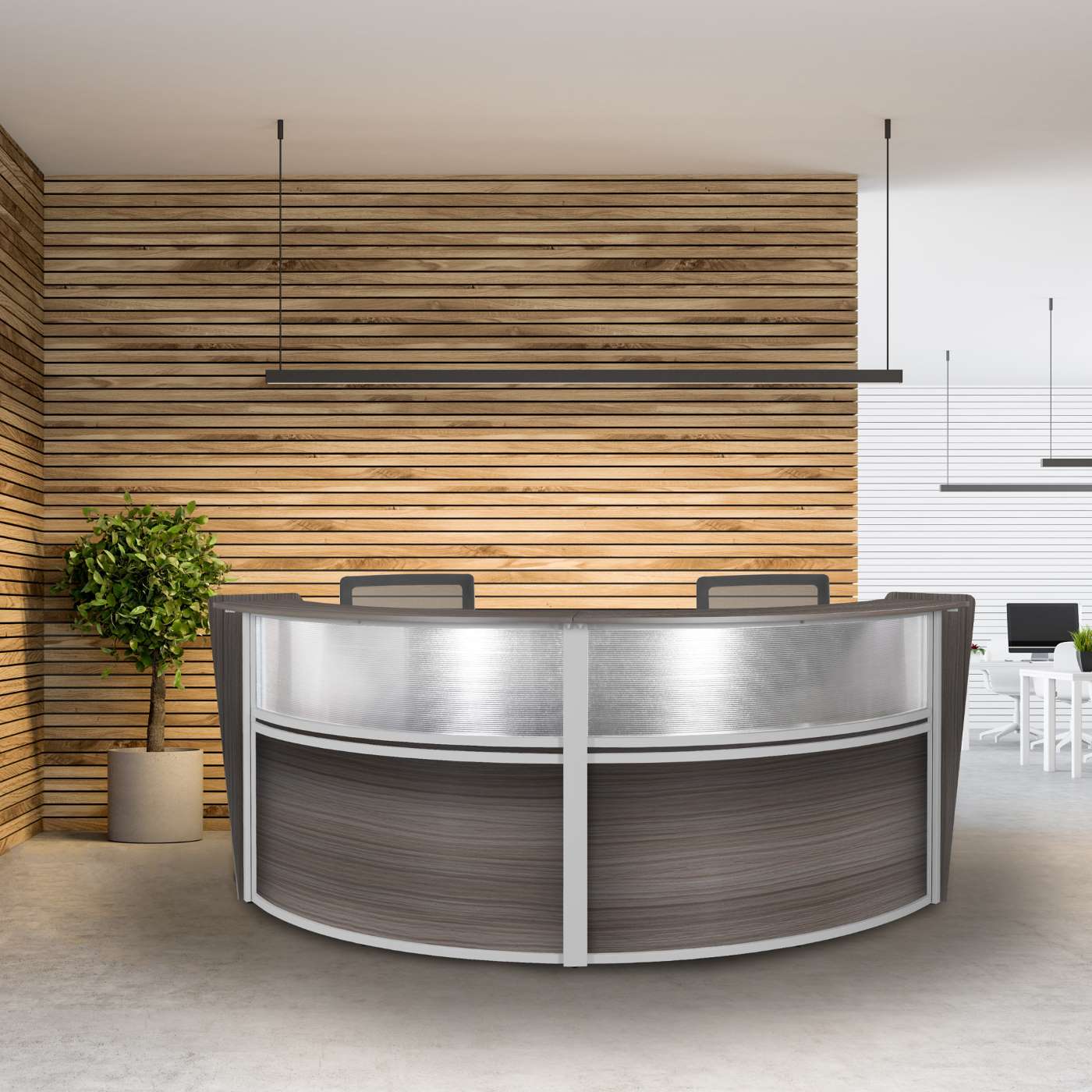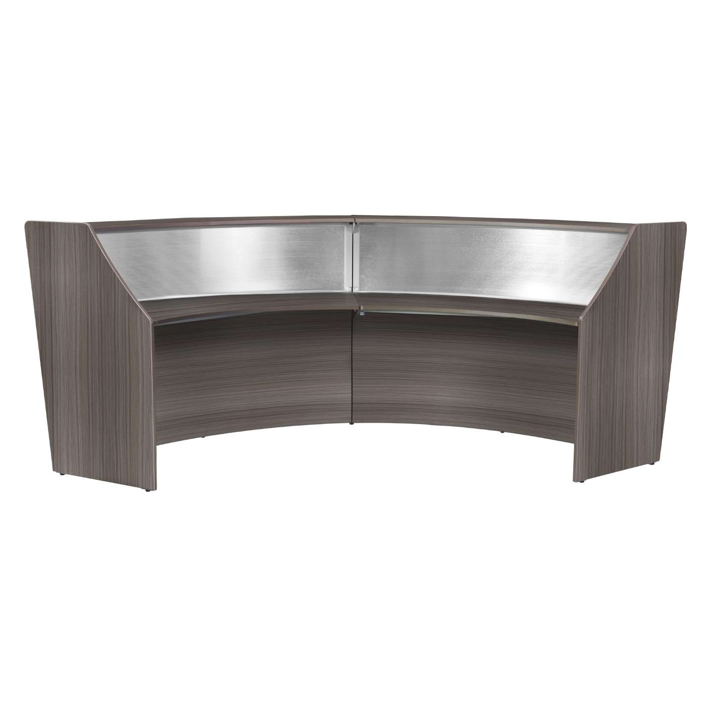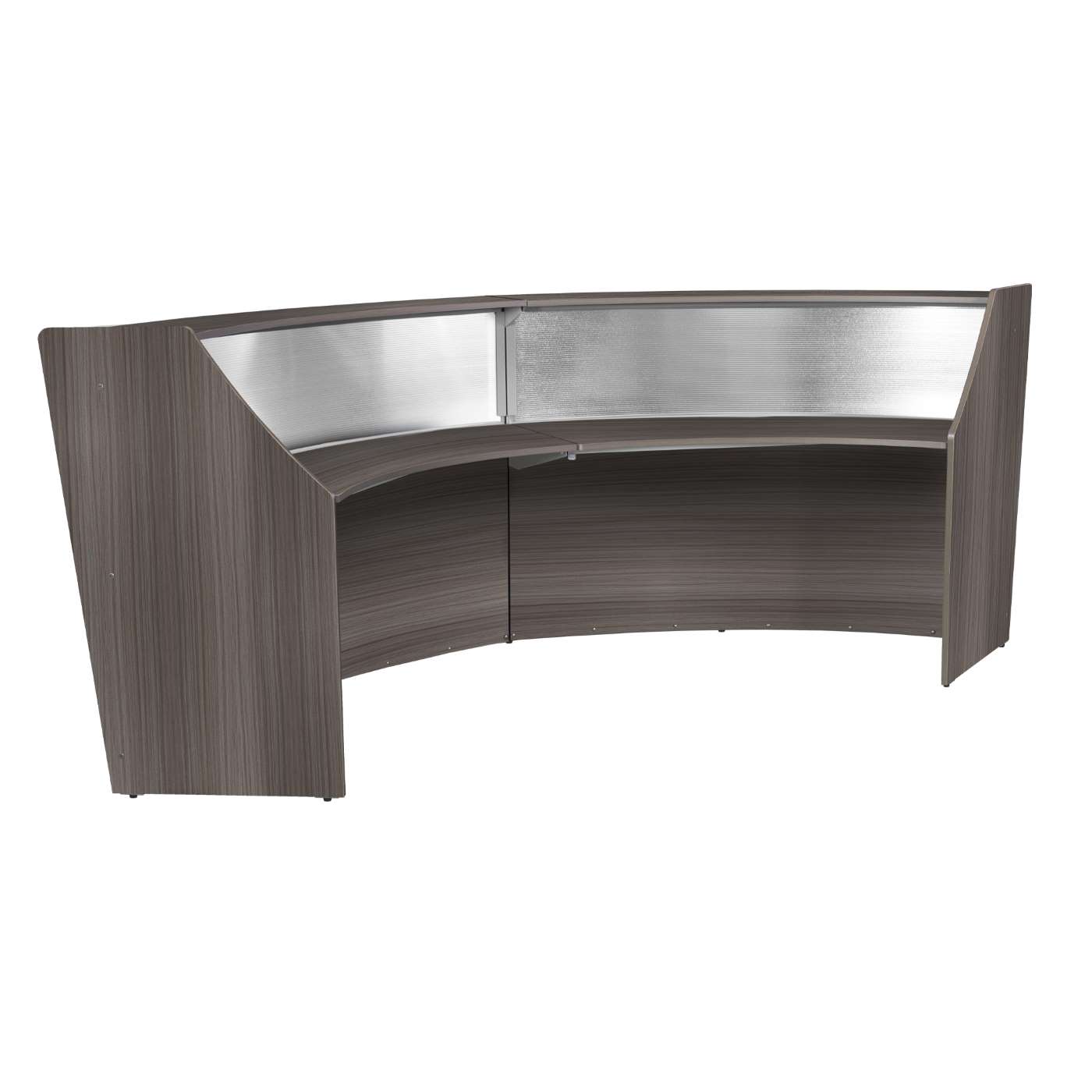 Double-Unit Reception Curved Desk Workstation “124.25W x 49D” - Driftwood Grey