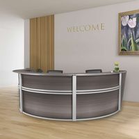 TRIPLE-UNIT RECEPTION CURVED DESK WORKSTATION “143.50W X 71D”- DRIFTWOOD GREY -FREE SHIPPING-