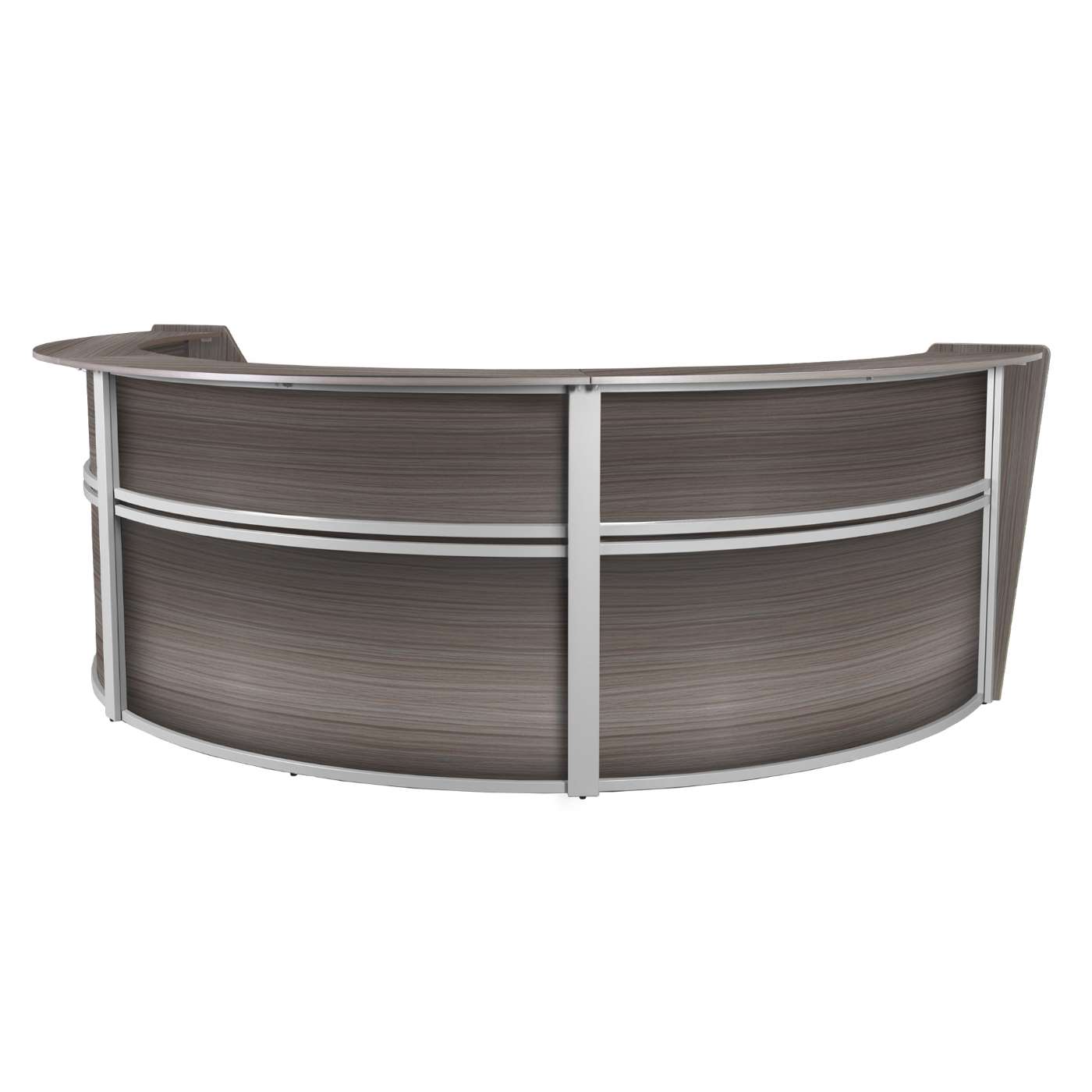 Triple-Unit Reception Curved Desk Workstation “143.50W x 71D”- Driftwood Grey