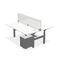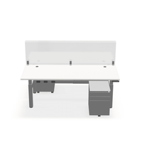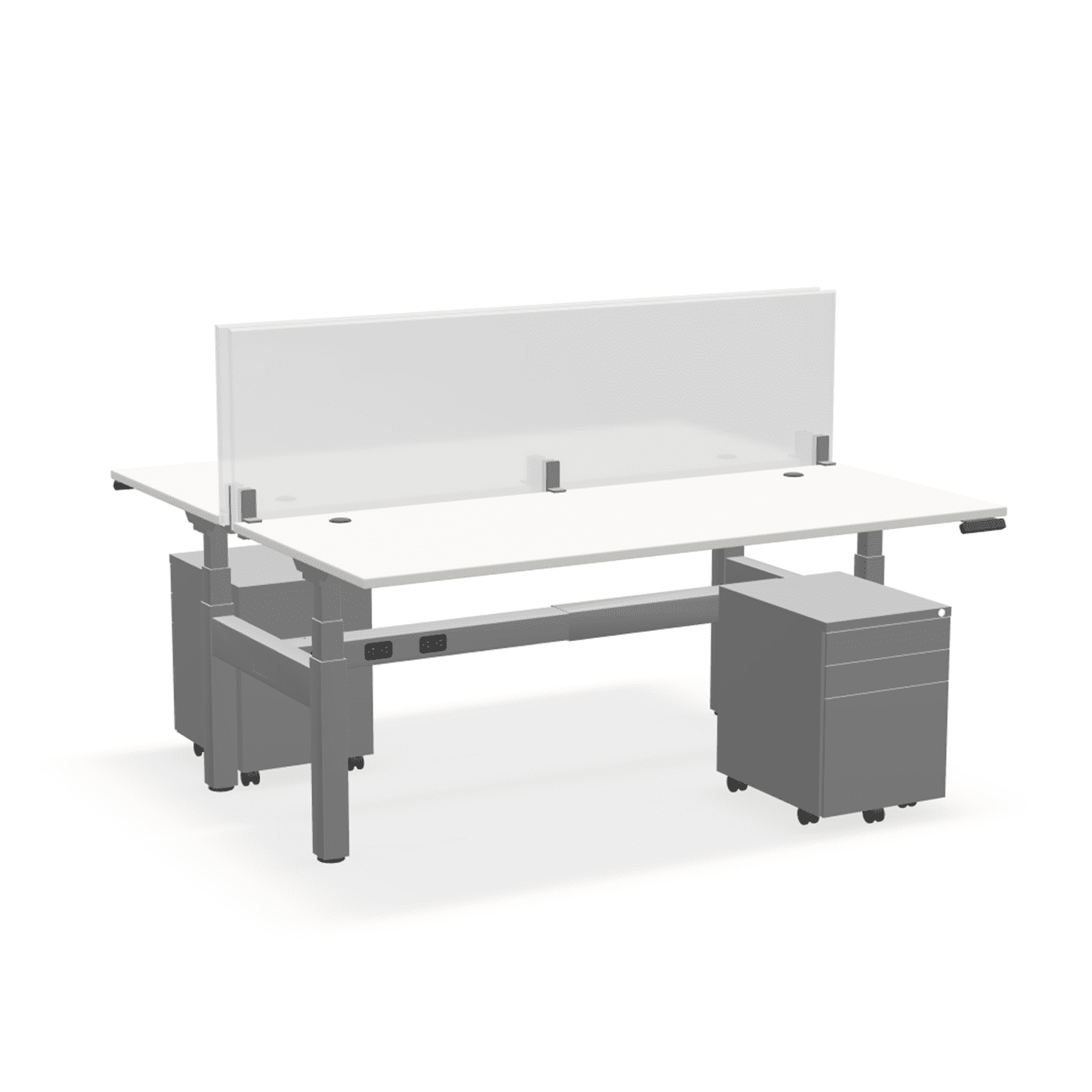 Elevate your work experience with ^EHomeBOOST^ White Standing Desks – the ultimate solution for a healthier and more productive workspace. Our Electric Desks are designed with ergonomics in mind, providing a perfect balance between aesthetics and flexibility. Whether you're looking for a stand-alone workstation or a versatile Electric Desk like this one, ^EHomeBOOST^ Pro has you covered. Our telescoping power beam sets us apart, allowing effortless configuration changes, from straight benching to L-shapes and more. The streamlined design not only exudes a clean and professional look but also incorporates divider options and integrated power and cable management for added convenience.This 2-person desk pod includes surface-mounted dry-erase frosted glass dividers, enhancing collaboration and privacy in your workspace. Additionally, each desk is equipped with a black box/box/file mobile pedestal file cabinet, offering ample storage space while maintaining a sleek and organized appearance.