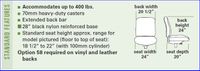 - Dimensions: Seat 24"W. x 20"D. Back 20.5"W. x 19.5"H. Seat height 18.5"-22". 28" heavy duty resin base.