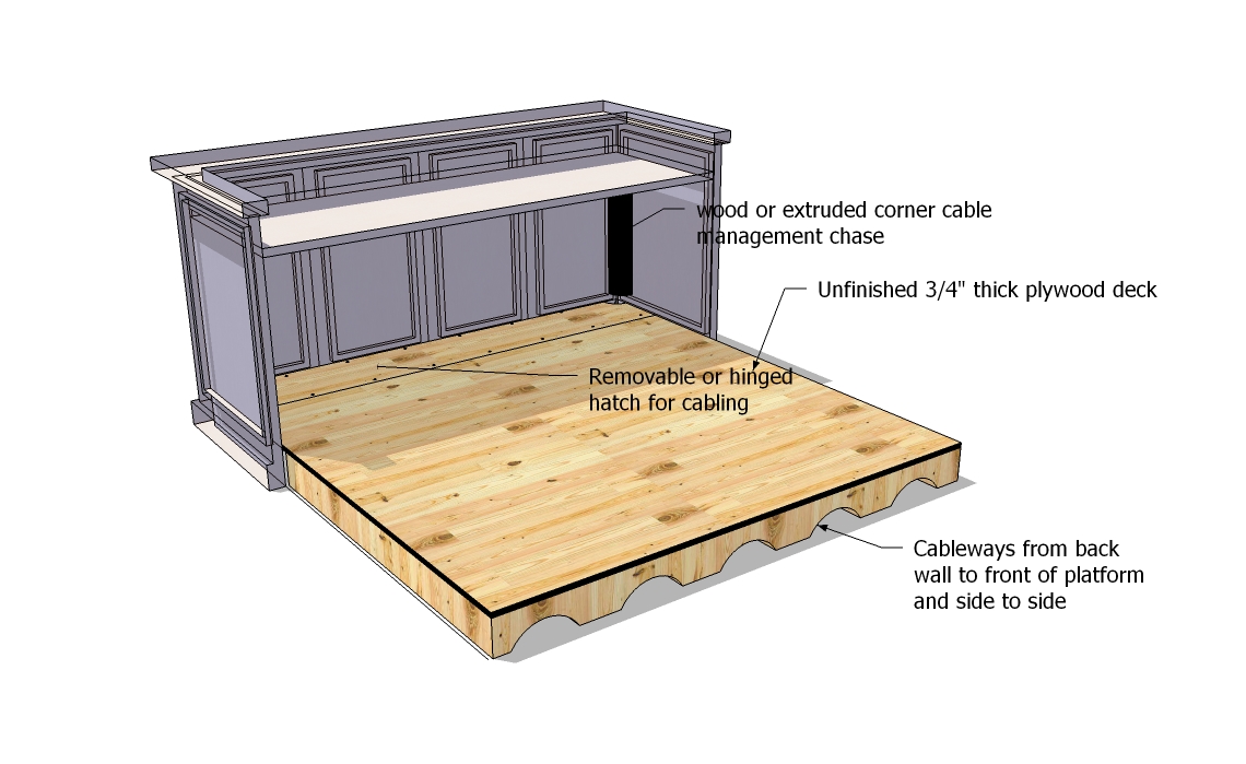 - Note: This judges' bench riser platform is designed to be used only with our ARD Judge's desks with a cutout to allow the judge's desk to slide into the riser. See the image above left.