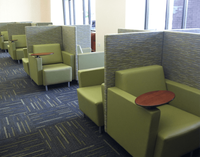 Each Sky Pinwheel lounge chair comes with a personal table and charging outlet, giving travelers the tools they need to stay