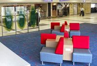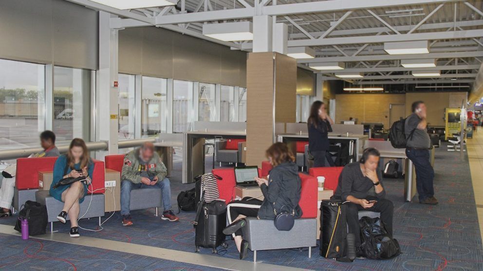 Unlike traditional rows of airport seating, the Sky Pinwheel design offers passengers a sense of personal space.