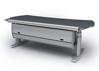 Designed as a sit-to-stand desk. Standard with four height-adjustable electric motors that adjust vertically from 25" to 51". Dual surfaces adjust independently of the other allowing quick, easy, and ergonomic positioning for each operator. The front surface is curved to embrace the human form and respond to your dynamic movements. The back surfaces (left and right) are straight to fit flush against the wall. This height-adjustable control room desk helps you concentrate and be more productive. Your benefits are reduced stress and fatigue compared to people who remained seated. So why is this important? Details below.- When seated our bodies behave differently: Muscle electrical activity drops, in turn causing harmful metabolic (chemical) effects, of sleepiness, and increased risk of diabetes. A sit-stand desk reduces blood sugar spike up to 43% after lunch!