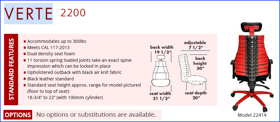 VERTE LUMBAR SUPPORT CHAIR: ADJUSTABLE BACK W/HEADREST: